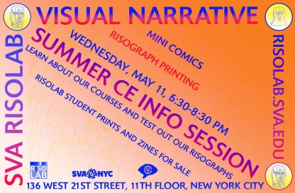 Keep Exploring Risograph Blog Posts News Happy Holidays from MFAVN! Events MFAVN at MoCCA 2023 News Congratulations to Pan Terzis, RisoLAB Manager, for his MoCCA Excellence Award News Interested in Risograph? Zines? Storytelling? WATCH our CE Info Session to learn more. News RisoLAB welcomes Sarula Bao! News RisoLAB is now accepting residency applications for 2019 and 2020 News Print your comic or zine in our RisoLAB at School of Visual Arts | RISO Workshop | September 23 … News Congrats to our RisoLab Artists in Residence, Thu Tran and Harvey Redding! News Check out our Risograph, ask questions and bring something to print! News Take the class, RISO Printing: An Introduction, and make that ‘zine! News Join us for the second Risograph Open House News SVA offers new Continuing Ed classes in Risograph printing! Featured Projects ‘Horror Hospital School’ by Maggie Vicknair (’21) is as Fun as it Sounds